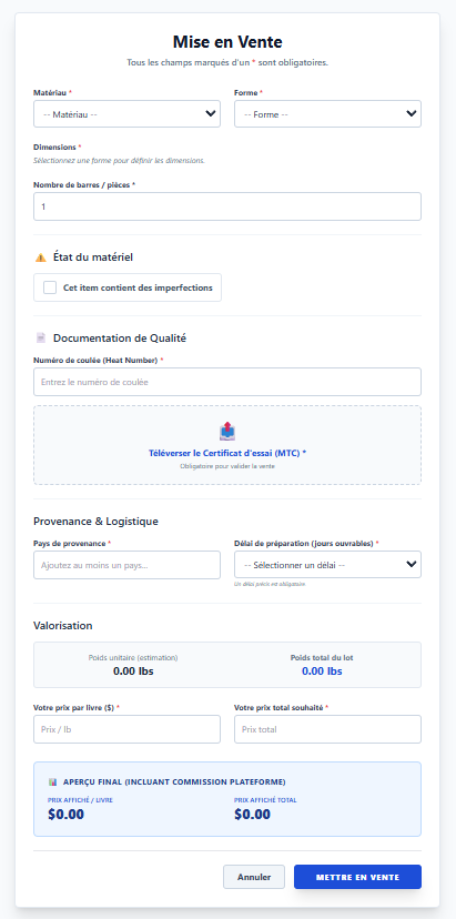 Félicitation, vous avez réalisé votre première mise en vente sur MétalUnion.